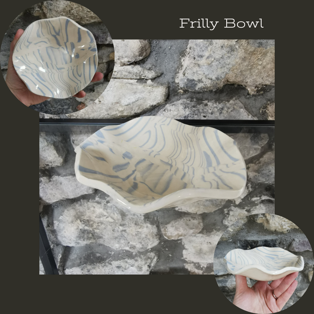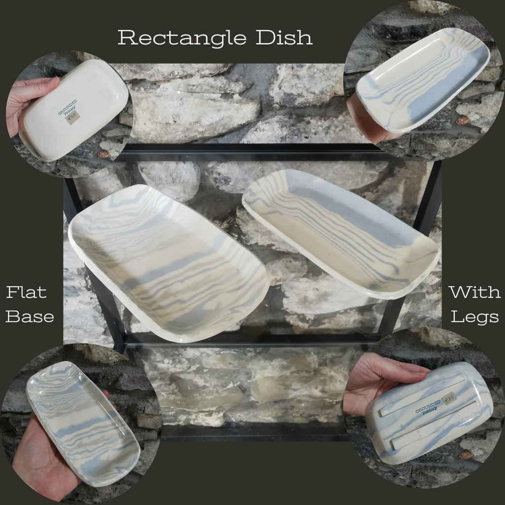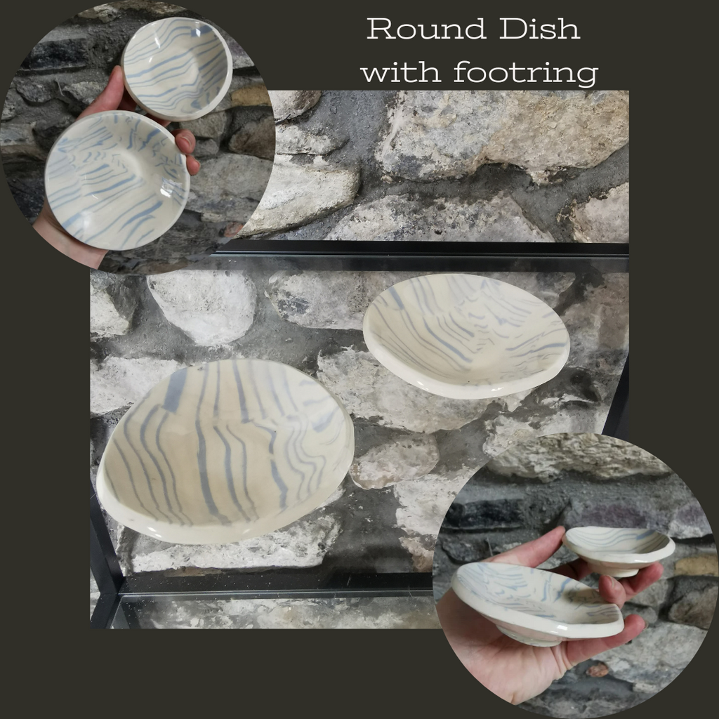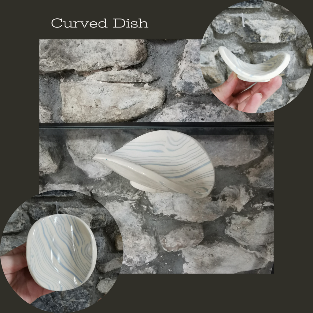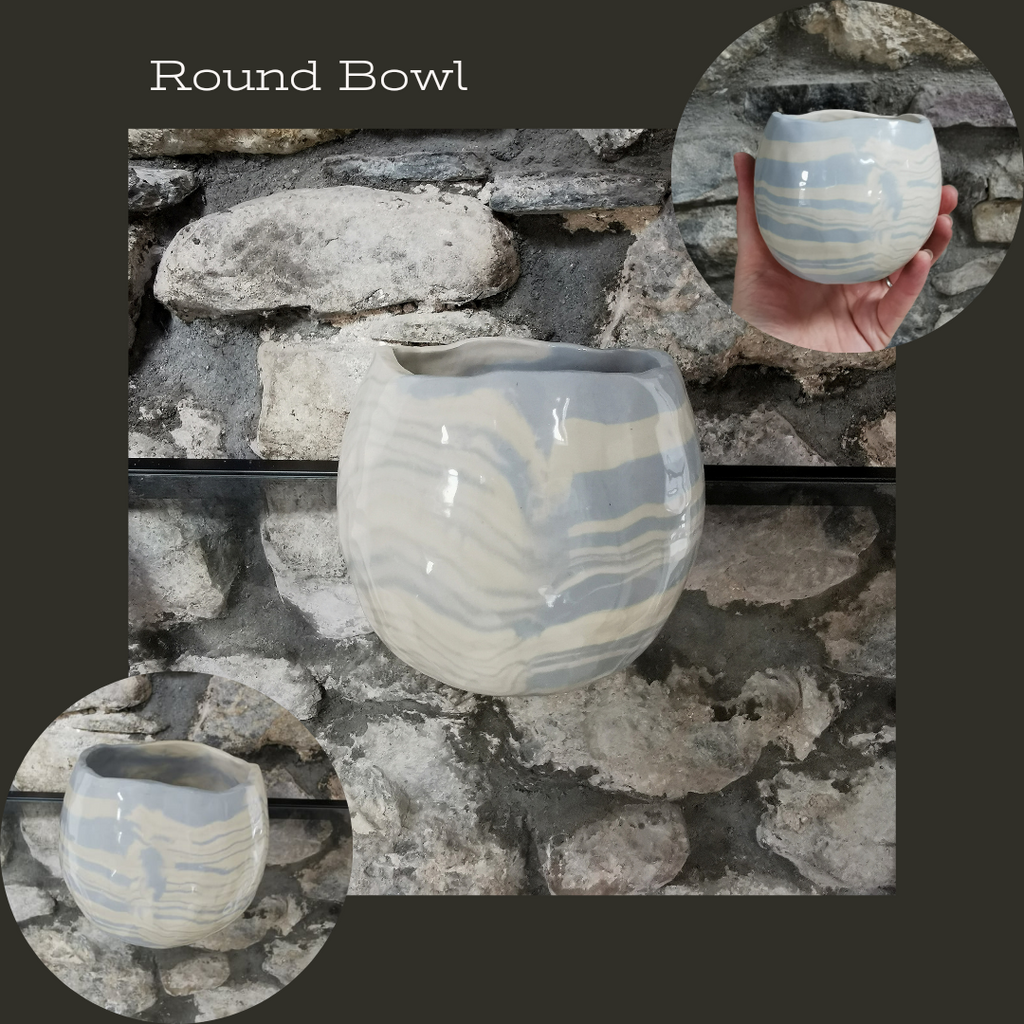 These colored dishes pots are hand formed using Japanese nerikomi techniques to give their unique wavy finish in shades of grey, blue and white clay.
