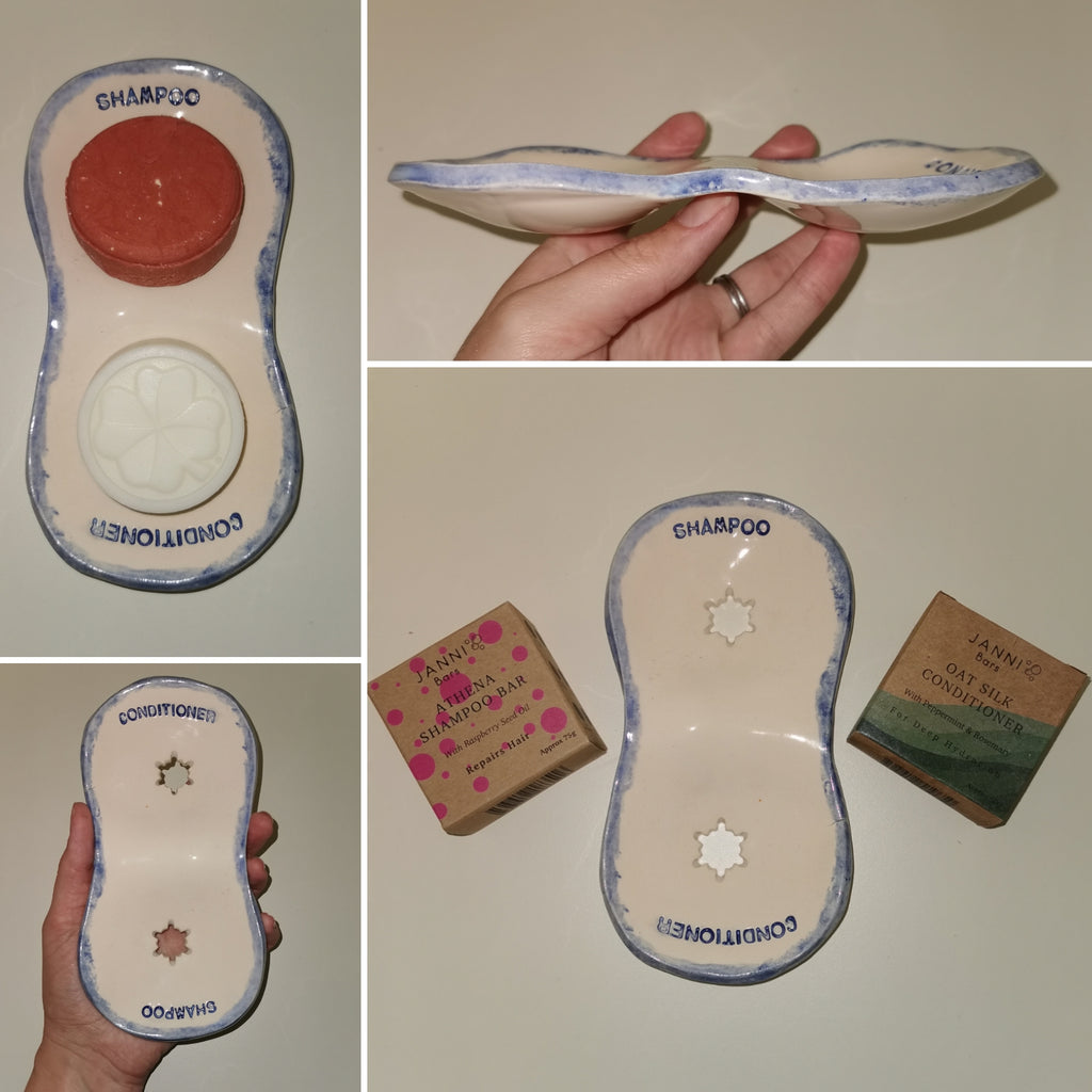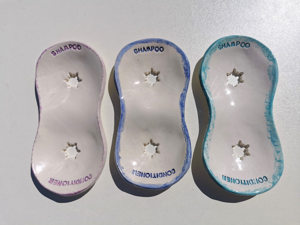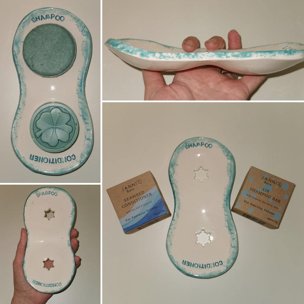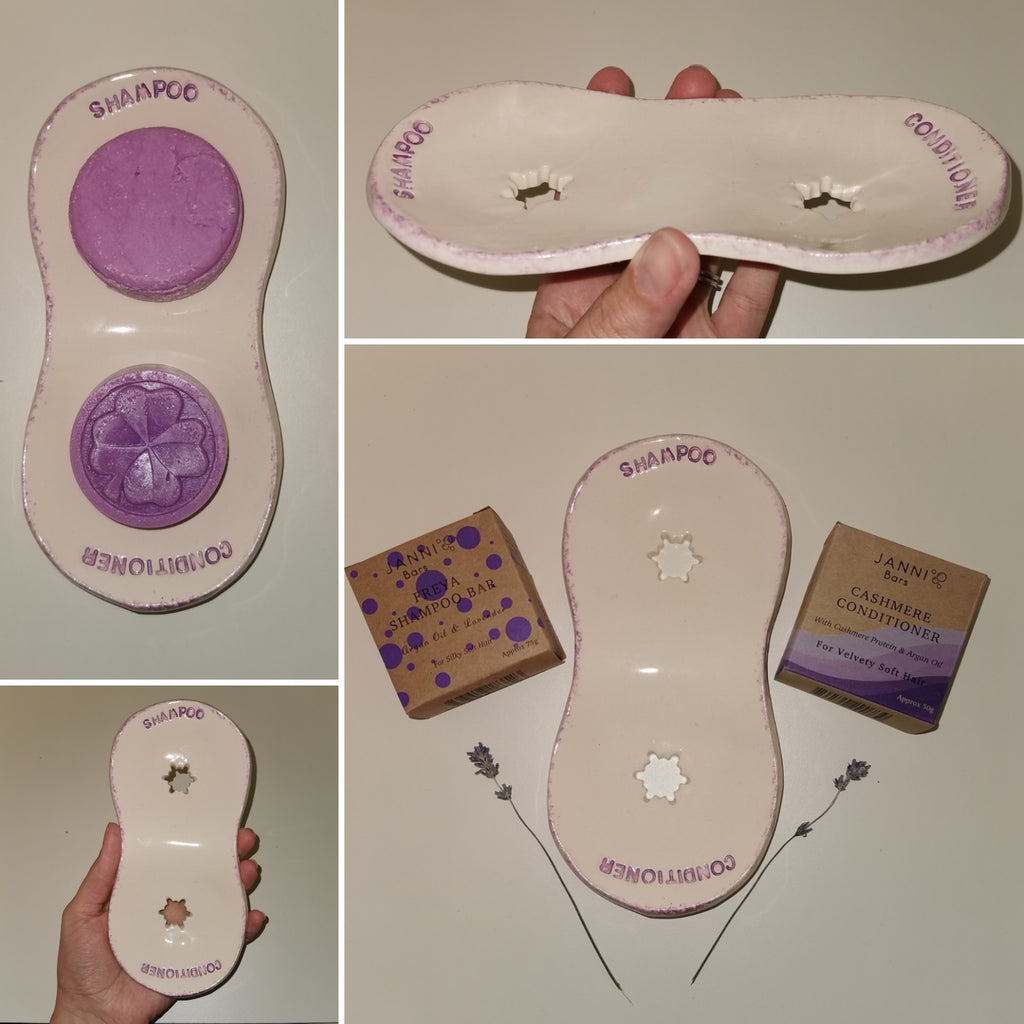 Our Shower Trays are specifically designed for natural soap bars, Shampoo and Conditioner or Face or Body bars. Its large drainage holes to allow water to run off during use, increasing the lifespan of your bars, which can last as long as 2 bottles.